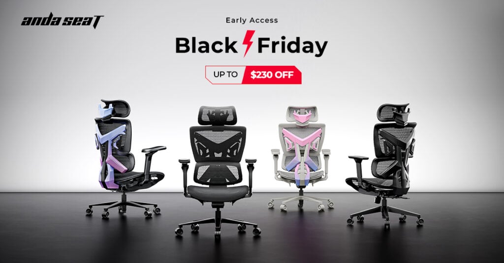 AndaSeat 的黑色星期五大型促銷活動提前到來! 今年的活動從 10 月 4 日持續到 10 月 30 日,整個椅子陣容都可享受巨額優惠,遠遠早於真正的黑色星期五高峰。